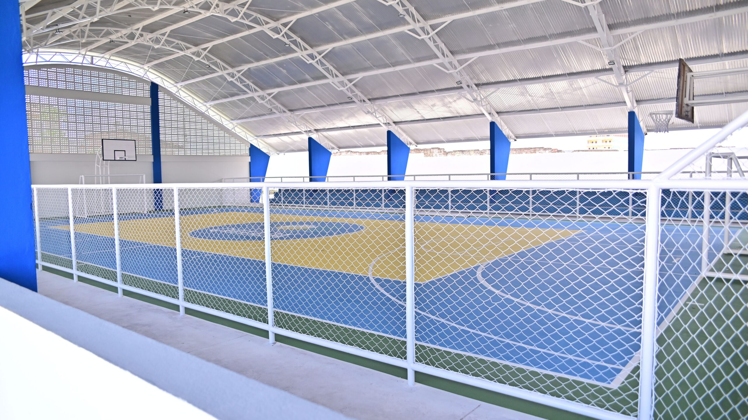 Outro destaque da obra é a recuperação total da quadra esportiva, que agora está pronta para receber atividades físicas, práticas esportivas e momentos de lazer, reforçando o compromisso da gestão municipal com a saúde e o desenvolvimento integral dos estudantes.