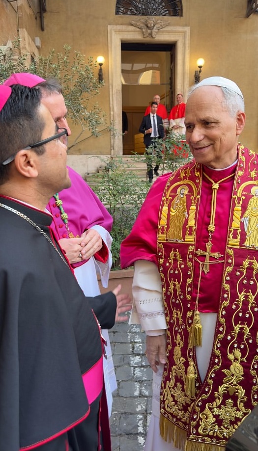 Na ocasião, Dom Aurélio também pôde saudar Sua Santidade, o Papa Leão XIV, recentemente eleito como Sucessor de Pedro, expressando-lhe respeito filial e comunhão com o seu ministério.