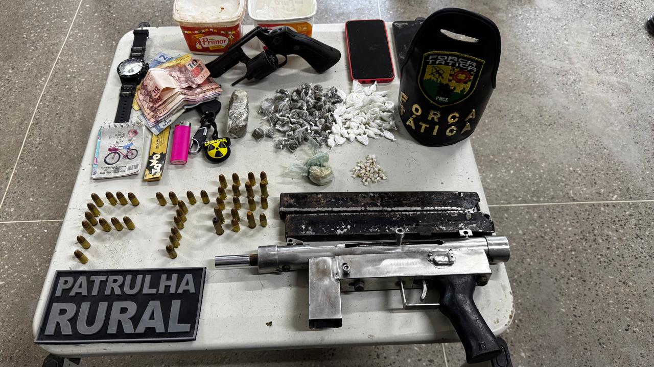 A Polícia Militar do Ceará (PMCE), por meio da 1ª Companhia do 29º Batalhão (1ª Cia/ 29º BPM), capturou três homens e uma mulher e apreendeu armas de fogo e drogas durante uma ação realizada nesta sexta-feira (4) no município de Baturité.