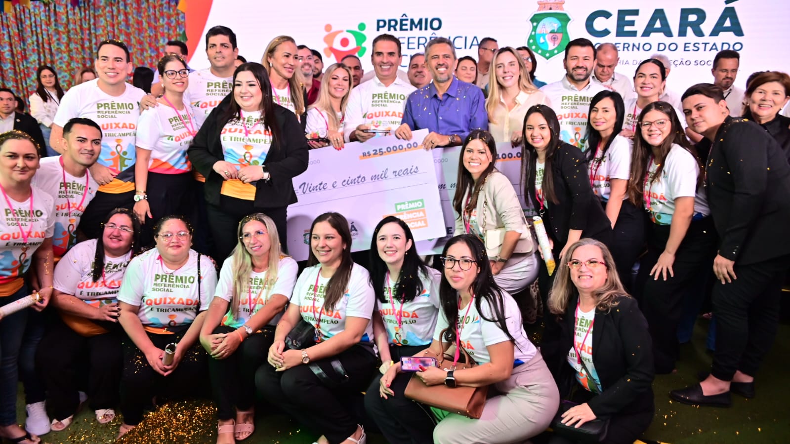 A Assistência Social de Quixadá recebeu, na manhã desta terça-feira (22), um reconhecimento estadual de grande relevância. O município foi premiado pelo Governo do Ceará durante a cerimônia do Prêmio Referência Social, que aconteceu na Cidade Mais Infância, no Centro de Eventos do Ceará, em Fortaleza. A premiação contou com a presença do governador Elmano de Freitas, da vice-governadora e secretária da Proteção Social, Jade Romero, além do prefeito de Quixadá, Ricardo Silveira, e da secretária de Assistência Social, Izaura Gomes.