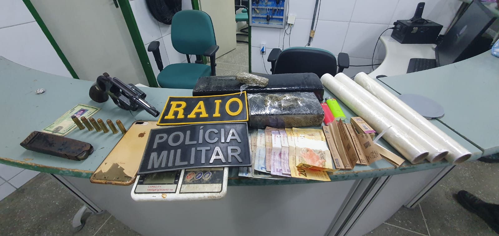 A Polícia Militar do Ceará (PMCE), por meio da 3ª Companhia do 4º Batalhão de Policiamento de Rondas e Ações Intensivas e Ostensivas (3ª Cia/ 4º BPRaio), prendeu um homem de 30 anos no bairro Palestina, em Canindé, após apreender 1,5 kg de maconha, um revólver calibre 38 com seis munições intactas e R$ 65,00 em espécie, na tarde desse domingo (24).