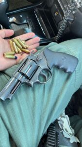 Por volta das 8h, os policiais foram acionados via Centro de Operações da Polícia Militar (Copom) para uma ocorrência de um indivíduo armado em uma residência no bairro Recreio. Ao chegarem ao local, na Rua Florisbela Vieira Andrade, o indivíduo autorizou a entrada da composição. Durante as buscas, os agentes localizaram um revólver calibre .38 e 10 munições.