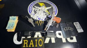 Durante a abordagem, os policiais visualizaram uma pistola calibre 7.65, além de entorpecentes e dinheiro em espécie. Na continuidade das buscas, os demais suspeitos foram encontrados em uma residência na Rua Aureliano Verçosa de Lima, onde foi apreendido um revólver calibre .38.