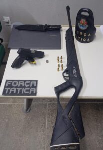 As equipes deram continuidade às diligências e, durante as buscas, foram localizados e apreendidos uma pistola, uma espingarda de pressão e um punhal. Outro indivíduo que estava na área também foi conduzido à unidade policial para averiguação.