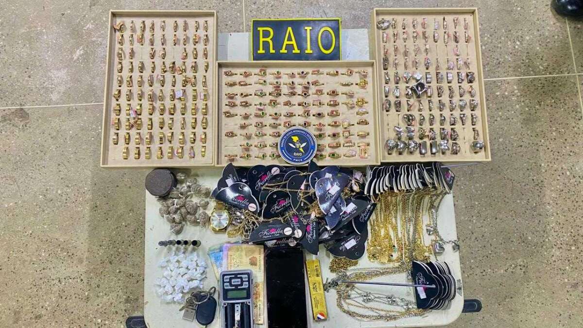 Uma ação conjunta da Polícia Civil do Estado do Ceará (PCCE) e da Polícia Militar do Ceará (PMCE) resultou, na tarde dessa quarta-feira (5), na prisão de um homem suspeito de roubo contra um comércio. A captura ocorreu no município de Redenção. Além disso, durante a ação os policiais recuperaram um veículo, 331 jóias e bijuterias, entre outros itens roubados. Com o suspeito os policiais encontraram trouxinhas de maconha e cocaína.