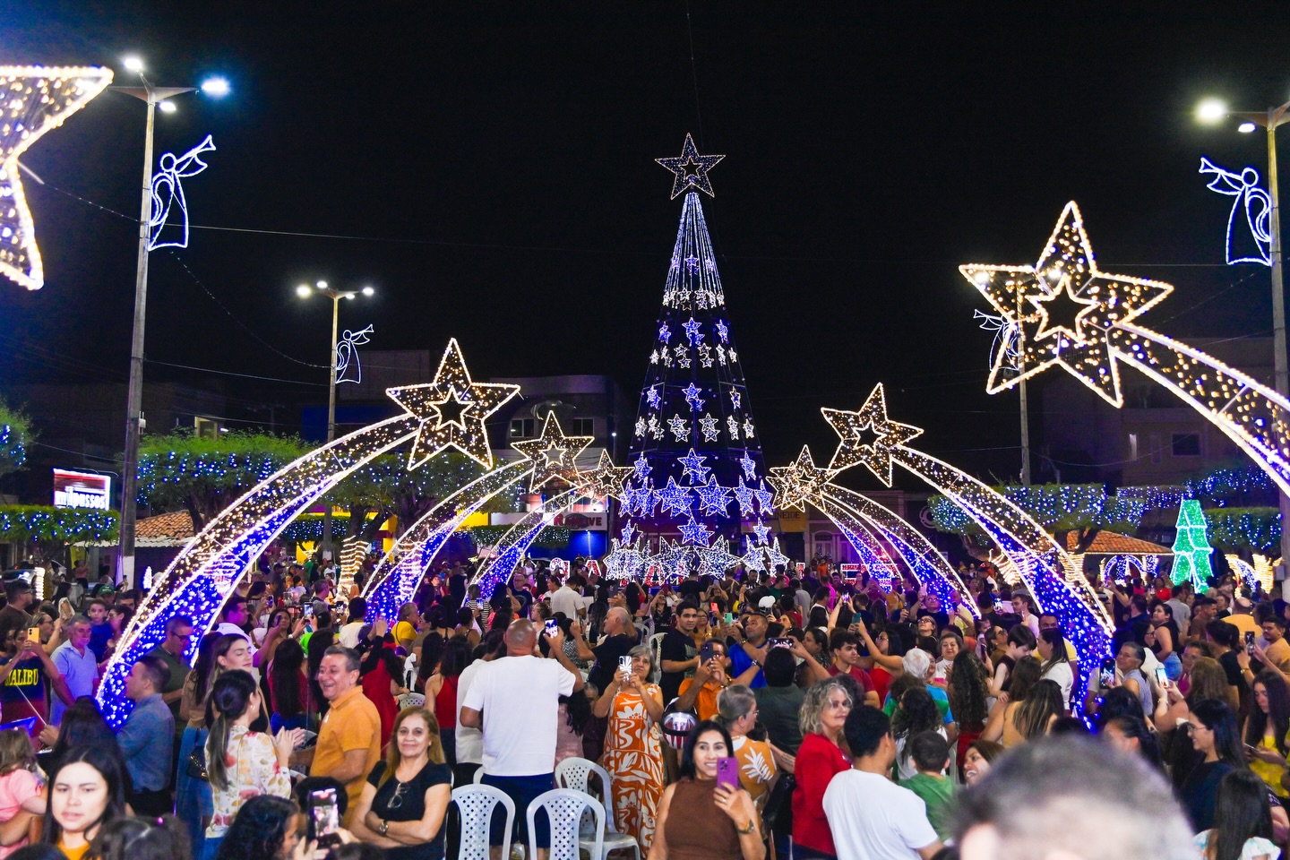 A Prefeitura de Quixadá abriu oficialmente, no último sábado (22), o Natal de Luz 2025, em uma noite marcada por emoção, cores e espírito natalino. O evento de abertura ocorreu na Praça José de Barros, que, assim como o Pórtico de entrada do município e a Praça Coronel Nanam, recebeu decoração especial para celebrar o nascimento de Jesus Cristo e a chegada do Papai Noel. A programação seguirá durante o fim de novembro e todo o mês de dezembro, transformando os principais pontos da cidade em cenários de encanto e celebração.