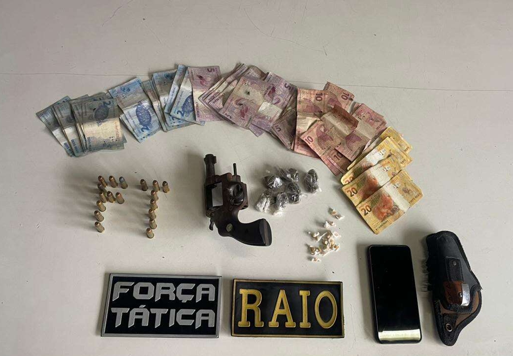 Com eles, foram apreendidos uma arma de fogo, 18 munições, cerca de 30 gramas de maconha, 21 papelotes de crack e certa quantia de dinheiro em espécie. O suspeito, de 19 anos, já conta com antecedentes criminais por homicídio.