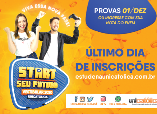 As inscrições para o Processo Seletivo Vestibular 2020 da UNICATÓLICA – Centro Universitário Católica de Quixadá se encerram hoje, 26 de novembro de 2019, e poderão ser realizadas, exclusivamente, pelo site unicatolicaquixada.edu.br. Conforme Edital, estão disponíveis 1.617 vagas, destinadas aos cursos presenciais de Administração, Arquitetura e Urbanismo, Biomedicina, Ciências Contábeis, Design de Interiores, Direito, Educação […]