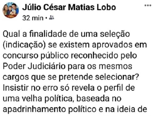 A saga dos concursados de Quixadá tem interessado não apenas aos aprovados que sofrem uma implacável perseguição por parte do prefeito de Quixadá, Ilário Marques (PT), que desde que assumiu o Executivo quixadaense, em 2017, tem essa postura, mas também toda a população. O defensor público do município, Dr Júlio César Matias, usou suas redes sociais, […]