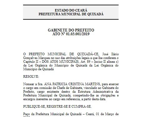 O prefeito de Quixadá, Ilário Marques (PT), nomeou, no inicio deste mês, dois dos secretários afastados, em agosto de 2018, pela operação “Fiel da Balança”, uma ação do Ministério Público que investiga um esquema de corrupção dentro do Executivo quixadaense, comando, de acordo com órgão, pelo próprio alcaide. Retomaram seus cargos, a chefe de gabinete, […]