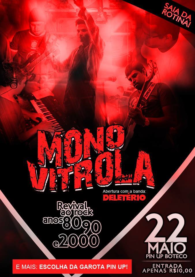 Quinta-feira, 22/05 – Monovitrola e Banda Deletério – Pin up Boteco – Rua José de Alencar, 547, Centro, Quixadá.