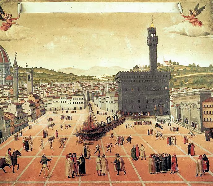 Tentando comprar o silêncio dele, o papa ofereceu a Savonarola a posição de cardeal, que este recusou. Quer tenha sido a sua política antipapal, quer a sua pregação que causou a sua ruína, Savonarola foi finalmente excomungado, preso, torturado até fazer uma confissão, e depois enforcado e queimado.