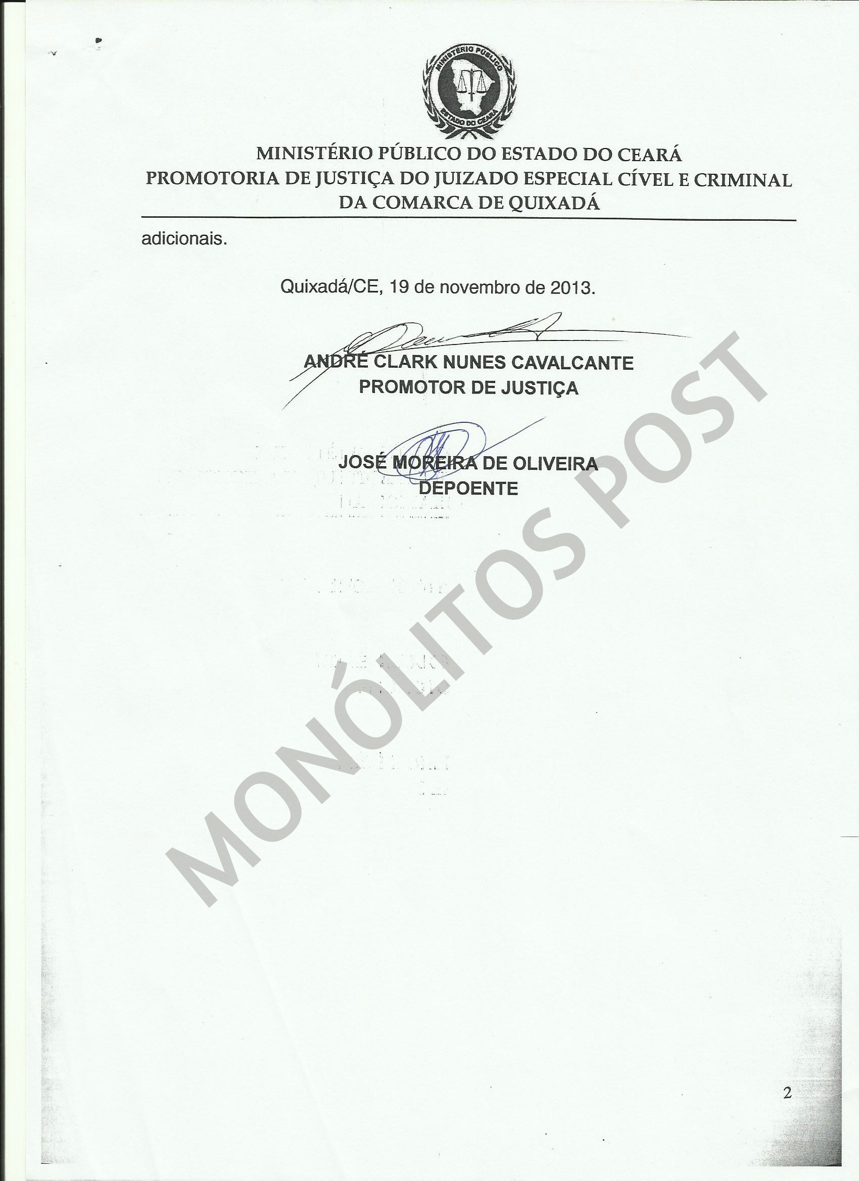 O Monólitos Post obteve com exclusividade cópia do depoimento do Sr. José Moreira de Oliveira, dado no dia 19 de novembro, às 9:30 horas. Nomes e documentos citados abaixo tiveram a divulgação autorizada pelos envolvidos. (Veja cópia no final desta matéria)