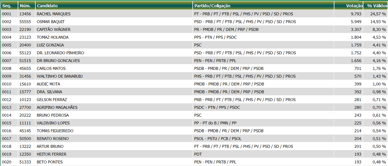 Clique na imagem a seguir para ver os 20 mais votados em Quixadá para Deputado Estadual: