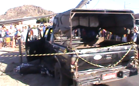 Com o forte impacto que tirou a vida do moto-taxista, o veiculo conseguiu também arrancar um poste de alta tensão…