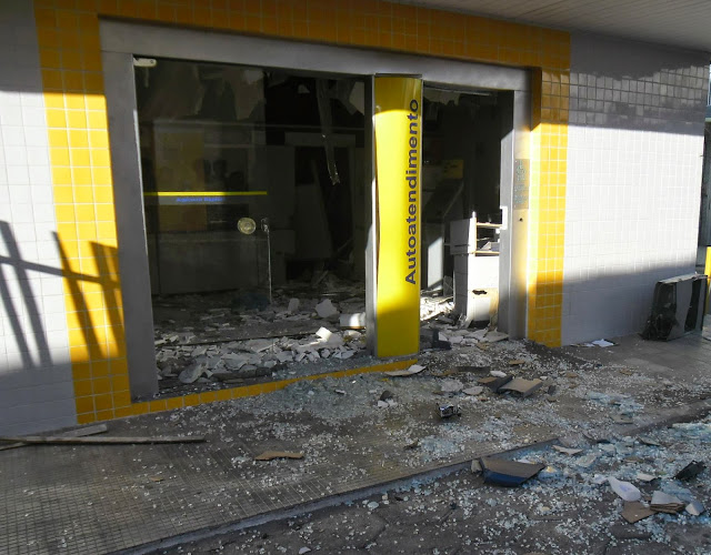 Aproximadamente 10 homens fortemente armados, explodiram caixas eletrônicos do Banco do Brasil e Bradesco no município.
