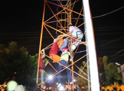 Três militares subiram na antena na tentativa de convencer o homem a descer. Entretanto, ele se recusava e gritava a todo instante que ia pular…